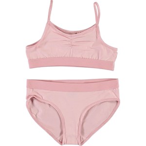 Jinny is a rose coloured underwear set. Both the top and the bottom have a wide elastic edge that ensures a comfortable fit.