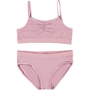 Jinny is a pink underwear set. Both the top and the bottom have a wide elastic edge that ensures a good fit.
