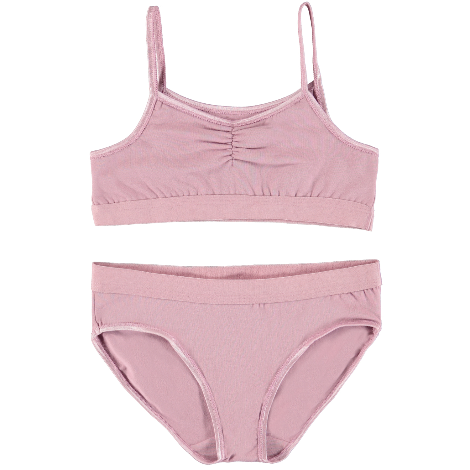 Jinny is a pink underwear set. Both the top and the bottom have a wide elastic edge that ensures a good fit.