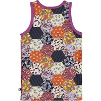 Molo's classic vest in a patchwork print with colourful flowers and lemons. It has purple rib edges.