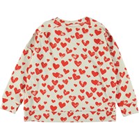 All is Love' is the name of the heart print that covers the cotton Mandy sweatshirt. Mandy has dropped shoulders and rib at the sleeves, neck and bottom.