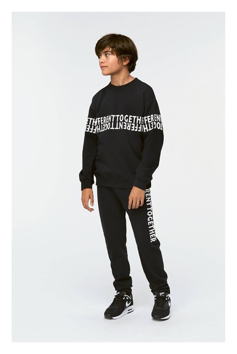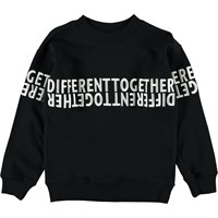 Molo's new collection is inspired by how we can all be different together. Morrison is a black sweatshirt with 'Different Together' embroidered over the chest and continues onto the back.