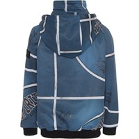 Cloudy is a sporty, waterproof softshell jacket in Molo's 'Blue Basket' print. Cloudy has a detachable hood, a zip front, side pockets and wind cuffs at the sleeve openings. It has an elastic edge at the bottom. Molo's softshell jackets are perfect for transitional weather because the fabric is waterproof, windproof and breathable. This product has a water resistant, PFC-free surface treatment (Does not contain, e.g. PF OS, PFOA, etc). Water column pressure: 8.000 mm. breathable: 3.000 g/m2/24hr.