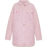 Hadlee is a pink quilted jacket with a button closure with big pockets on the chest. The jacket is also water-repellent and PFC-free.
