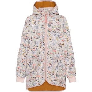Hillary is a functional softshell jacket with a small floral print and a lovely contrast colour on the inside. The jacket is in a practical length with elastic at the back to give it a great fit. It has a detachable hood, a front zip, front pockets, rib at the sleeves and a reflector on the back. Molo's softshell jackets are perfect for transitional weather because the fabric is waterproof, windproof and breathable. The jacket has a comfortable fleece on the inside that is made from recycled plastic bottles. This product has a water resistant, PFC-free surface treatment (Does not contain, e.g. PF OS, PFOA, etc). Water column pressure: 8.000 mm. breathable: 5.000 g/m2/24hr. It does not have taped seams.