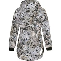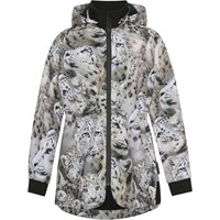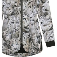 Hillary is a body conscious softshell jacket with a print of snow leopards. The jacket has an elastic waist, detachable hood, a zip front closure, elastic edge at the sleeves and Molo's iconic star reflector on the back. Molo's softshell jackets are the perfect choice for transitional weather because the outer fabric is windproof, waterproof and breathable, while the lining and the interlining are recycled and made of recycled polyester. This product has a water resistant, PFC-free surface treatment (Does not contain, e.g. PFOS, PFOA, etc). Water column pressure: 8.000 mm. breathable: 5.000 g/m2/24hr.