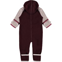 Udo is a baby fleece romper in bordeaux with rose coloured sleeves and knit pockets that look like small mittens. The romper has a zip closure and a hood. Molo's fleece rompers are warm and insulating. Wear it alone or, on very cold days, as an extra layer under a snowsuit. This style will be with feet from size 56-74. Without feet from size 80-92.