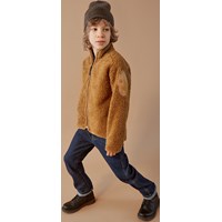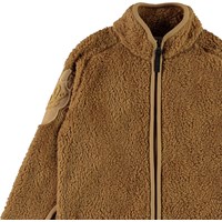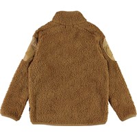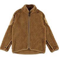 Ulan is a jacket in brown teddy fleece with a zip front closure, thumb holes and a patch shaped like a bear claw on both sleeves. Molo's fleece jackets are warm and keep you insulated. Wear it alone or, on very cold days, as an extra layer under another jacket.
