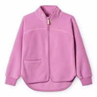 Blue fleece jacket made of recycled polyester with matching ribbed edges. The jacket has a high collar, a front zipper, a front pocket and an extended back cut. It is soft, has a regular fit and works well both on its own or as an extra layer under a jacket.
