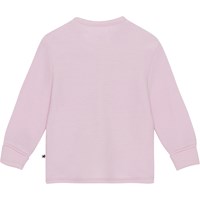 Purple cardigan for smaller children in soft fleece made from 100% merino wool. The cardigan is highly suitable as outerwear when taking a walk in a stroller during the cold autumn and winter months, and can also be used as an extra layer indoors. It has a spacious fit with buttons in the front and snug ribbed cuffs with folded edges at the wrists.