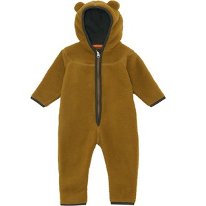 Umeko is a baby fleece romper in brown. The romper has a zip closure, a hood and small sewn on ears. Molo's fleece rompers are warm and insulating. The fleece romper can be used alone or as an extra layer under a snowsuit on really cold days. Sizes 56-74 have feet while sizes 80-92 do not.