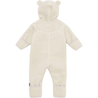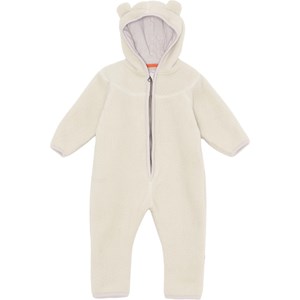 Umeko is a baby fleece romper in off white. The romper has a zip closure, a hood and small sewn on ears. Molo's rompers are warm and insulating. The romper has a zip closure, a hood and small sewn on ears. Molo's fleece rompers are warm and insulating. The fleece romper can be used alone or as an extra layer under a snowsuit on really cold days. Sizes 56-74 have feet while sizes 80-92 do not.