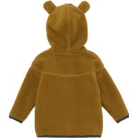 Ummi is a soft baby fleece jacket in brown. Ummi has a hood with small sewn on ears and rib at the edge of the hood, sleeves and bottom. You can wear it as a layering piece or alone because it is warm and insulating.