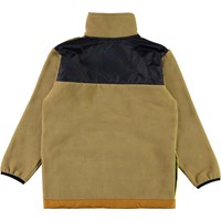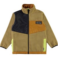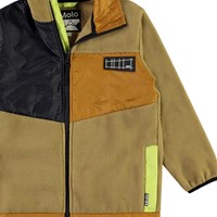 Urbain is Molo's cool, new fleece jacket in beige with neon green details at the zip pockets. The jacket has a high neck and a front zip closure. Urbain can be worn indoors as a jacket or as an extra layer of warmth under another jacket. Molo has matching trousers.