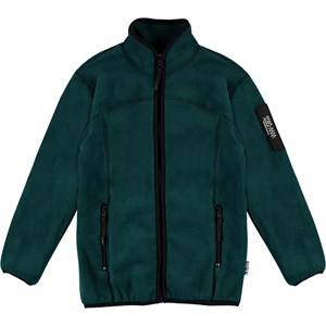 Urbano is a cool fleece jacket in dark green. The fleece jacket has a zip closure and zip pockets. Molo's fleece jackets are warm and insulating. Wear it alone or, on very cold days, as an extra layer under another jacket.