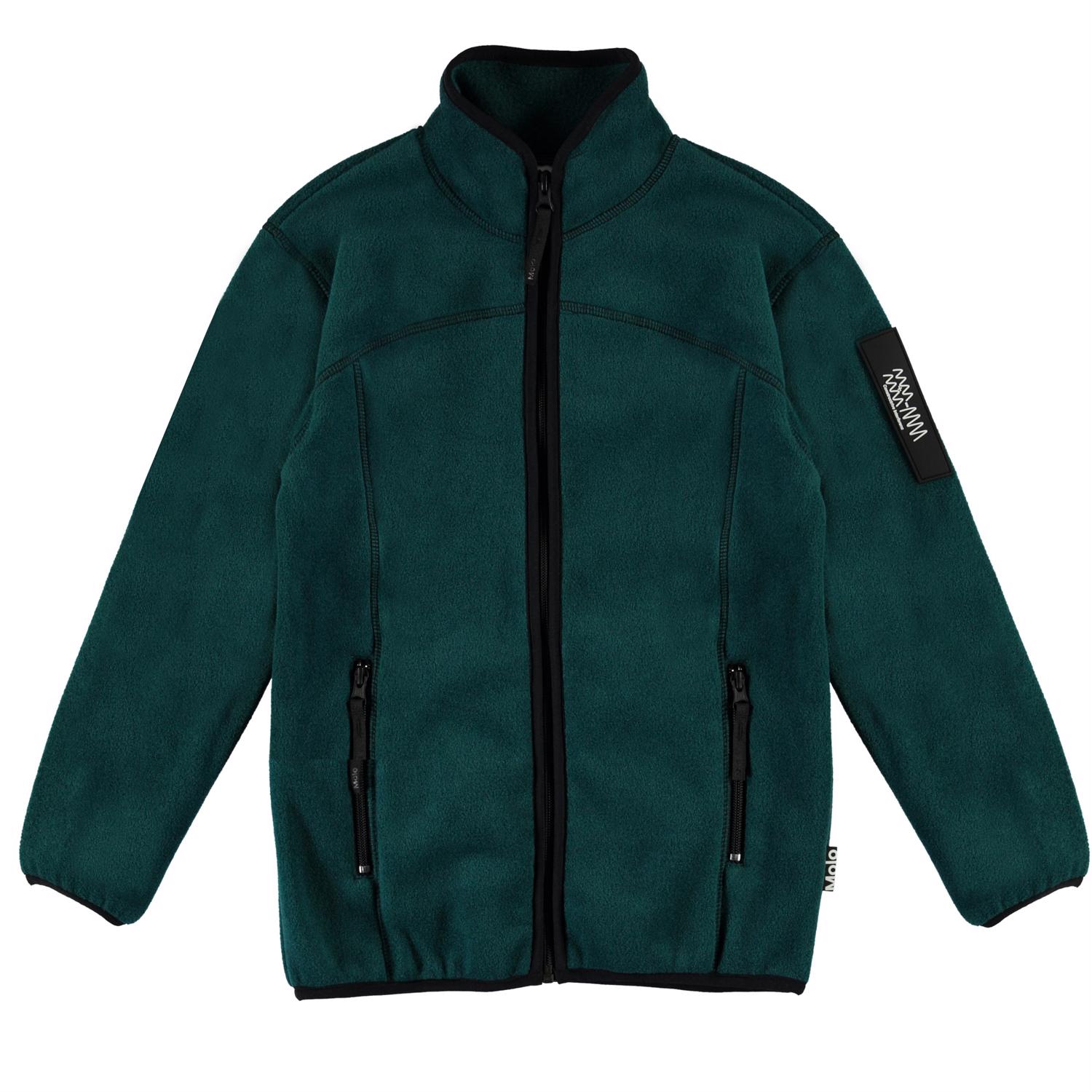Urbano is a cool fleece jacket in dark green. The fleece jacket has a zip closure and zip pockets. Molo's fleece jackets are warm and insulating. Wear it alone or, on very cold days, as an extra layer under another jacket.