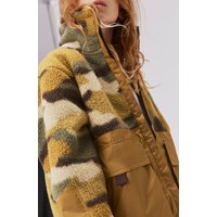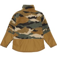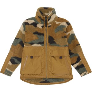Utha is Molo's new fleece jacket in brown with a camouflage print, and large patch pockets. The jacket has a high collar and a front zip closure. This Molo product is 100% recycled and made from recycled polyester. The recycled polyester is made of used plastic bottles and other waste. The production of recycled polyester requires fewer resources and emits less CO2, making Molo’s fleece the sustainable choice.