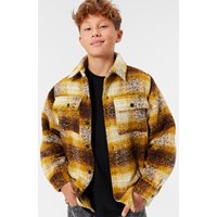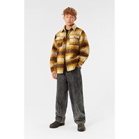 Checked overshirt in golden and brown colours. The overshirt has a loose fit, shirt collar, button closure, long sleeves with cuffs and button closure. The overshirt is lined, making it comfortable to wear, and it is great for transitional periods or as an extra layer when the weather is colder.
