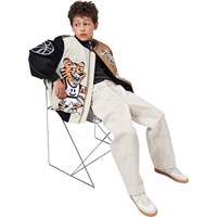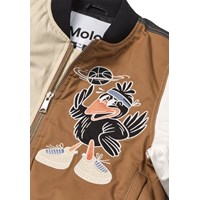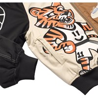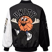 Beige, black and brown bomber jacket with embroidered motifs of a basketball, a tiger and a crow. UNITY logo on the back, ribbed edges and side pockets. Perfect as a light jacket in transitional periods.