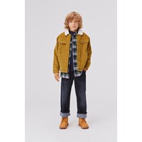 Brown velvet jacket with a plush face on the collar. The jacket has a button front closure and outer pockets on the chest and side pockets.