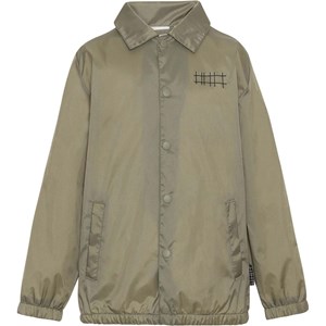 Hoskin is a khaki, PFC-free jacket in 100% recycled nylon. Hoskin has a snap closure, pockets and elastic at the sleeves and bottom.