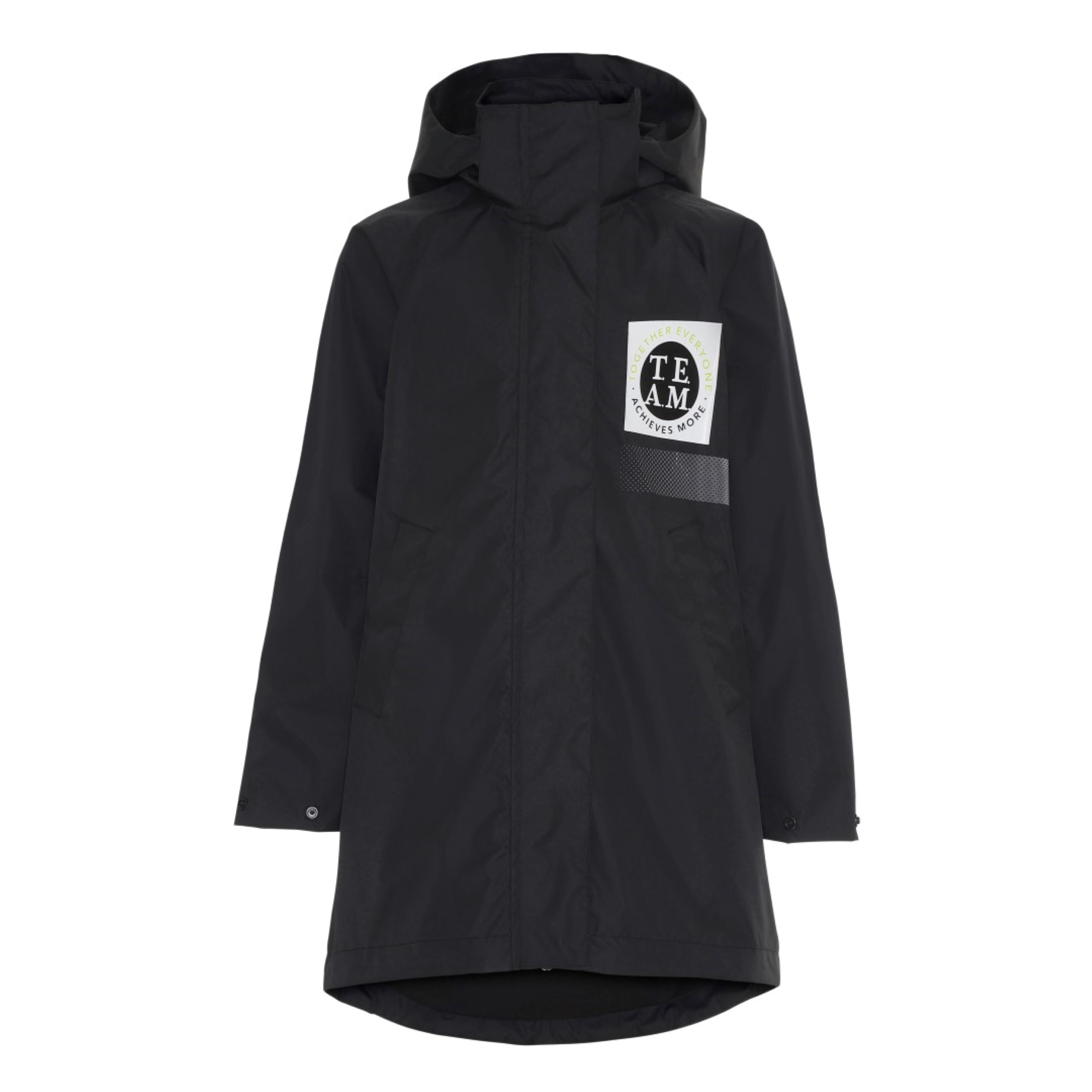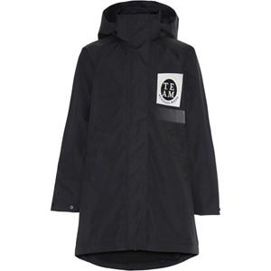 Win is a long, black parka jacket that is extremely versatile and is the only summer/transition jacket you are going to need. The jacket is functional because of its fabric that is waterproof with taped seems, windproof and breathable, but it's also cool looking and perks up any outfit. The jacket has a 'Team' patch on the left chest, reflectors on both the front and back, and an elastic waist that can be tied. It has a detachable hood. This product has a water resistant, PFC-free surface treatment (Does not contain, e.g. PFOS, PFOA, etc). Water column pressure: 5.000 mm. breathable: 5.000 g/m2/24hr.