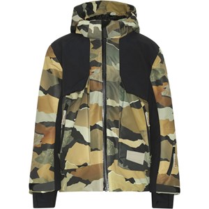 Alpine is a functional, waterproof ski jacket in a camouflage print. Alpine is perfect for extremely cold days but also ordinary winter days. The high level of breathability helps regulate a child's body temperature so it does not become too cold or over heated. On warmer winter days, a child can wear the jacket with a thin under layer, but on extremely cold days, you can add an extra layer underneath. Alpine is also a good choice for less active moments. The jacket has a detachable hood, a front zip closure, large roomy pockets and adjustable wrists with snug snow flaps with thumb holes and a reflector stripe on the back. The jacket is constructed in windproof, waterproof and breathable materials. The outer fabric is made from 45% recycled polyester, the 3M™ Thinsulate™ padding from 83% recycled polyester and the lining from 100% recycled polyester.This product has a water resistant, PFC-free surface treatment (Does not contain, e.g. PFOS, PFOA, etc). Water column pressure: 15.000 mm. Breathable: 15.000 g/m2/24hr.