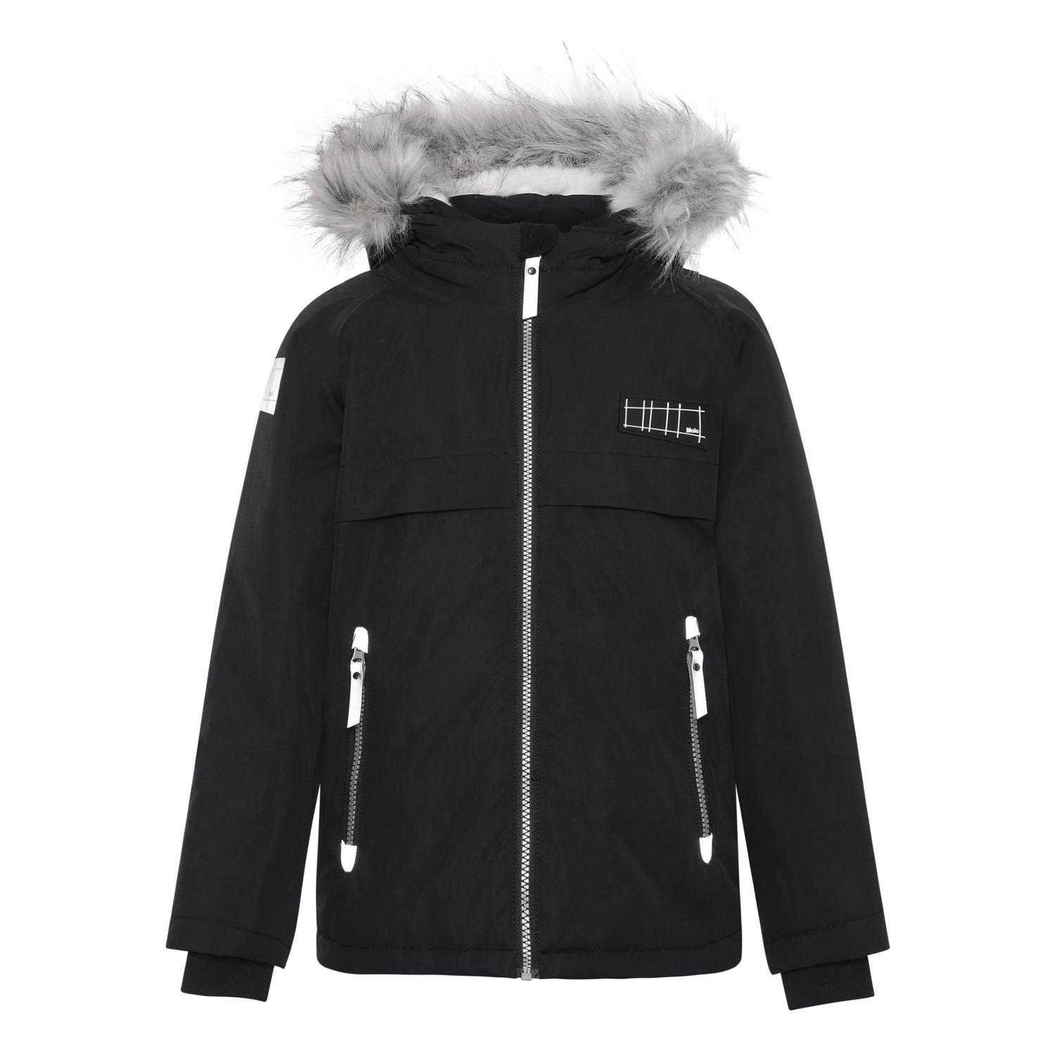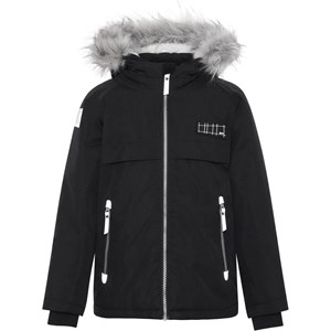 Castor is a lined and waterproof winter jacket in black with a detachable faux fur trim. The jacket has a detachable hood, a hidden zipper with a placket, hidden pockets, visible reflectors on the sides of the sleeves and on the back. The jacket is made in a windproof, waterproof and breathable fabric, while the lining and the interlining are recycled and made of recycled polyester. This product has a water resistant, PFC-free surface treatment (Does not contain, e.g. PFOS, PFOA, etc). Water column pressure: 15.000 mm. breathable: 15.000 g/m2/24hr. They have straps with velcro for braces that can be purchased.