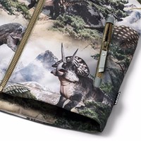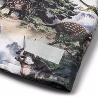 Wind and waterproof winter jacket in recycled polyester, with a dinosaur print. The jacket has a detachable lined hood, practical zip closure, zip pockets with fleece, ribbed cuffs, and elastic at the bottom to effectively help against the wind. On the back, there is a large reflector that increases visibility in traffic. Furthermore, the jacket is lined with fleece and padded with 3M™ Thinsulate™.