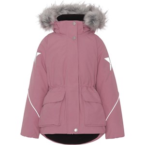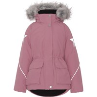 Cathy Fur is a waterproof winter jacket in a rose colour. Cathy Fur is perfect for extremely cold days but also ordinary winter days. The high level of breathability helps regulate a child's body temperature so it does not become too cold or over heated. On warmer winter days, a child can wear the jacket with a thin under layer, but on extremely cold days, you can add an extra layer underneath. Cathy Fur is also a good choice for less active moments. The jacket has a detachable hood with a faux fur edge (also detachable), a front zip closure, roomy pockets, adjustable elastic waist and Molo's iconic star reflectors on the back. The jacket is constructed in waterproof, windproof and breathable materials. The outer fabric is made from 59% recycled nylon, the 3M™ Thinsulate™ padding from 78% recycled polyester and the lining from 100% recycled polyester. This product has a water resistant, PFC-free surface treatment (Does not contain, e.g. PFOS, PFOA, etc). Water column pressure: 15.000 mm. Breathable: 15.000 g/m2/24hr.