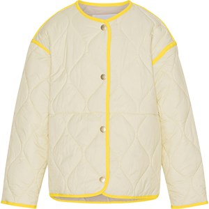 Hailee is a light yellow quilted jacket with yellow contrast edges. The jacket has a button front closure.