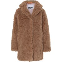 Haili is a soft, light brown teddy coat with a collar that can be worn up or down. The coat has a snap closure.