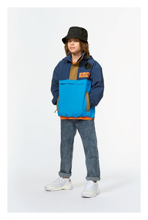 Halden is a blue anorak that is very versatile and is the only summer/transitional jacket you will need. The jacket is functional because the fabric is waterproof, windproof and breathable, but it also has many cool details and colours that perks up any outfit. The jacket is blue with brown details, and it has a detachable hood.