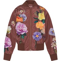 Haliva is a brown bomber jacket with a beautiful floral print. Haliva has striped rib at the neck, sleeves and bottom. The jacket is also water-repellent and PFC-free.