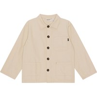 Beige cotton jacket in a loose fit with a classic straight collar and button front closure. The jacket is also great as an overshirt to wear indoors.