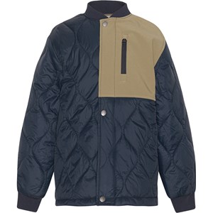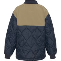 Harold is a dark blue quilted jacket. It has rib edges at the neck and sleeves as well as a zip closure. The jacket is also water-repellent and PFC-free.