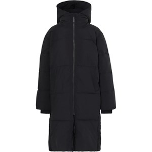 Harper is a wonderfully warm, long coat in black. The outer fabric is 51% recycled, while the lining and interlining are 100% recycled and made of recycled polyester. It has a hood, zip pockets on the front and a reflector on the back. The jacket is lined in pearl padding, which makes it extra soft and retains heat, while giving it a down-like feel. The outer fabric has a water resistant, PFC-free surface treatment (Does not contain, e.g. PFOS, PFOA, etc).