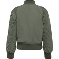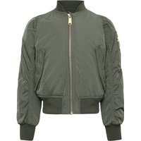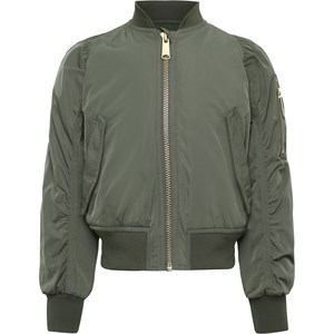 Haylee is a sporty bomber jacket in army green with a zip closure. It has draped sleeves, side pockets and a pocket on one sleeve. It has rib at the neck and bottom. This product has a water resistant, PFC-free surface treatment (Does not contain, e.g. PFOS, PFOA, etc). Water column pressure: 8.000 mm. breathable: 3.000 g/m2/24hr.