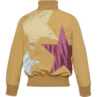 Hazel is a honey coloured bomber jacket with large, sewn on stars in beautiful colours. The jacket has rib at the neck, sleeves and bottom.