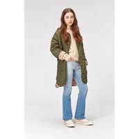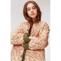 Hedvig is a quilted coat that can be worn two ways. Hedvig is dark green and has a floral lining in shades of green, organge and pink. It is reversible so that the lining can be worn on the outside, which means one coat becomes two.