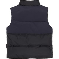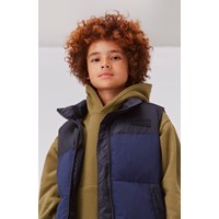 Heike is a dark blue vest. It is lined with technical down, called pearl padding, which makes it extra soft, retains heat and has a down-like feel. This product has a water-resistant, PFC-free surface treatment (Does not contain, e.g. PFOS, PFOA, etc). Water column pressure: 5.000 mm. Breathable: 5.000 g/m2/24hr.