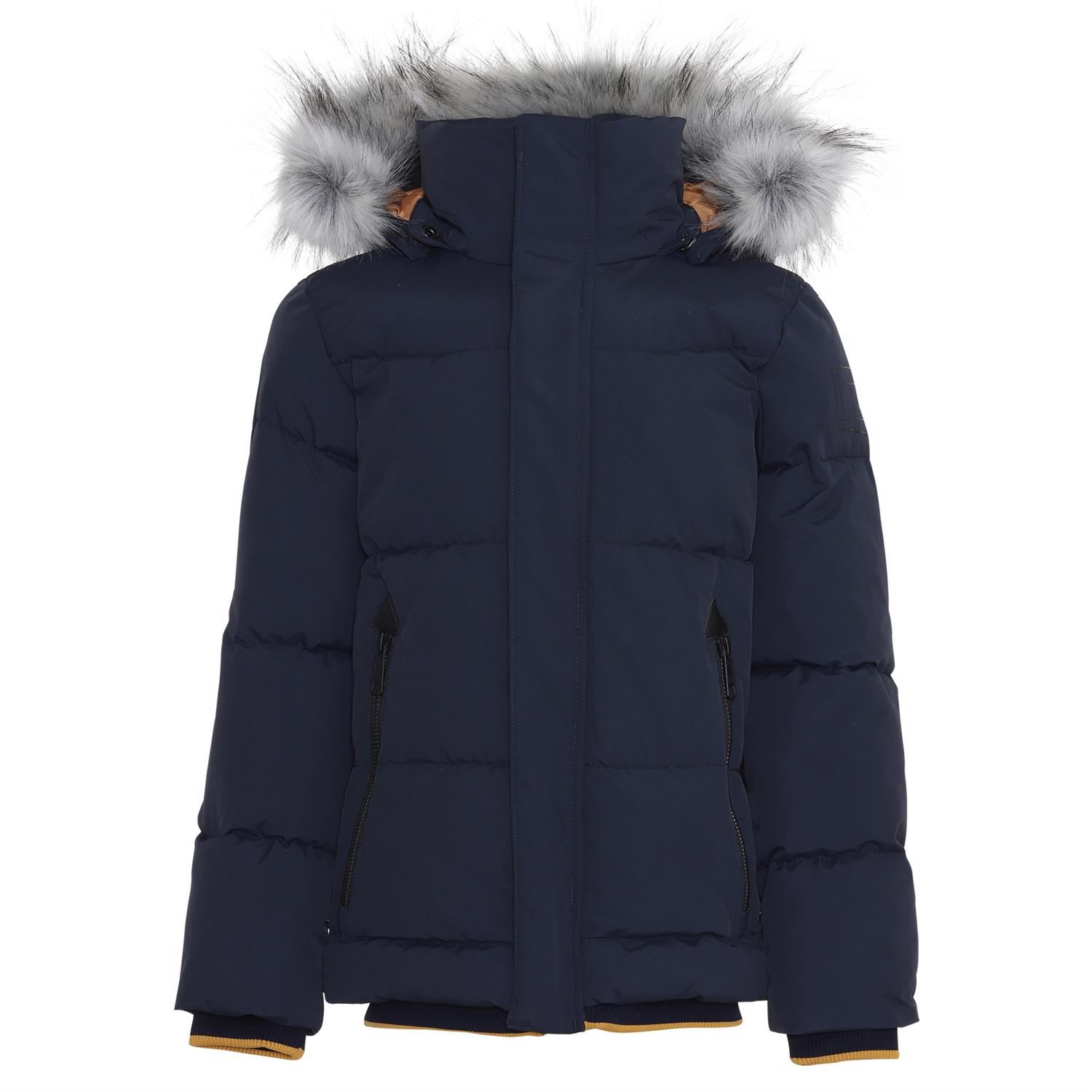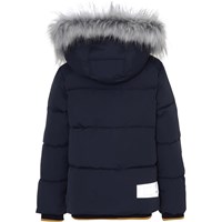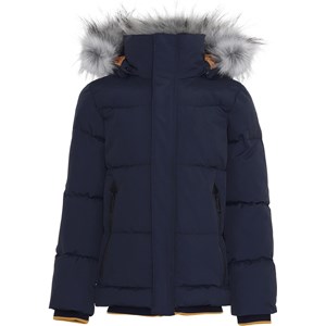 Herbert is a dark blue winter jacket that has a detachable hood with a detachable faux fur trim. It has a front zip closure with a placket and storm flaps at the sleeves and bottom. It is constructed in a breathable, windproof and waterproof quality and lined in pearl padding, which makes it extra soft and retains heat, while giving it a down-like feel. The jacket is in a windproof, waterproof and breathable fabric. This product has a water resistant, PFC-free surface treatment (Does not contain, e.g. PFOS, PFOA, etc). Water column pressure: 3.000 mm. breathable: 3.000 g/m2/24hr.