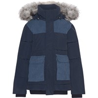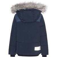 Dark blue winter jacket with large patch pockets and corduroy panels in the front. The jacket is part Molo’s ''Everyday Exploration'' collection. It is outerwear for everyday activities that is both practical and looks great. The jacket is lined with pearl padding, which gives it an extra softness, retains heat, and has a down-like feeling.