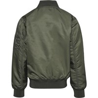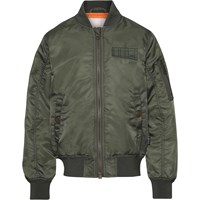 Hiker is a sporty, khaki green bomber jacket with a zip closure and slightly draped sleeves. Hiker has practical pockets on the front as well as a zip pocket on one sleeve.