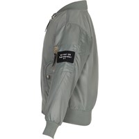 Sporty green bomber jacket with a zipper down the front, pockets at the sides and on one sleeve and rib at the neck, sleeves and bottom. This product has a water resistant, PFC-free surface treatment (Does not contain, e.g. PFOS, PFOA, etc).