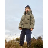 Soft, warm down jacket with a hood. The jacket is a part of Molo’s ''Everyday Exploration’. It''s outerwear for everyday adventures that is special because of its amazing details and colourful prints. The jacket is, of course, also responsibly produced in recycled materials, ensuring it lives up to Molo’s high standards for outerwear. This Hilo is in green corduroy.