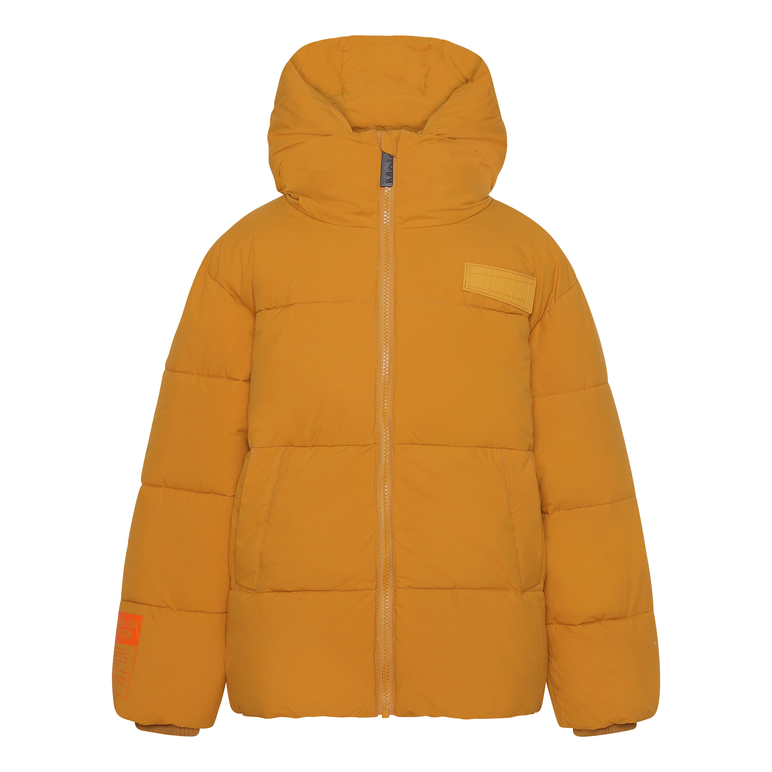 Hilo is a practical winter jacket, in a golden mustard colour, that is constructed in 59% recycled nylon from waste. It has pockets with a zipper and a reflector on the back. The jacket is lined in pearl padding, which makes it extra soft and retains heat, while giving it a down-like feel. The outer fabric has a water resistant, PFC-free surface treatment (Does not contain, e.g. PFOS, PFOA, etc).