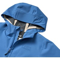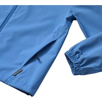 Blue lightweight and waterproof jacket made from recycled polyester. The jacket has practical zip pockets, elastic cuffs, and an adjustable drawstring at the bottom. Perfect for the transitional season.