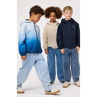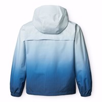 Wind- and waterproof jacket in recycled polyester with a hood in blue gradient colours. The jacket has a regular fit, front pockets with zippers, adjustable elastic at the bottom, elastic at the cuffs, waterproof seams, and a zipper with a flap to keep out the weather.