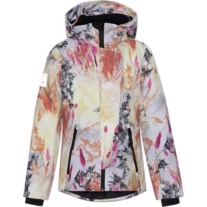Pearson is a functional, waterproof ski jacket in light blue with a print of colourful branches. lyseblå med print af farvede grene. Pearson has a detachable hood and a zip front closure with an asymmetric shaped placket. It has side pockets and adjustable sleeve openings with a snug storm flap and thumb holes and reflective stripes on the sleeves. The jacket is made in a windproof, waterproof and breathable fabric with taped seams. The lining and interlining are recycled and made of recycled polyester. This product has a water resistant, PFC-free surface treatment (Does not contain, e.g. PFOS, PFOA, etc). Water column pressure: 15.000 mm. breathable: 15.000 g/m2/24hr. They have straps with velcro for braces that can be purchased.